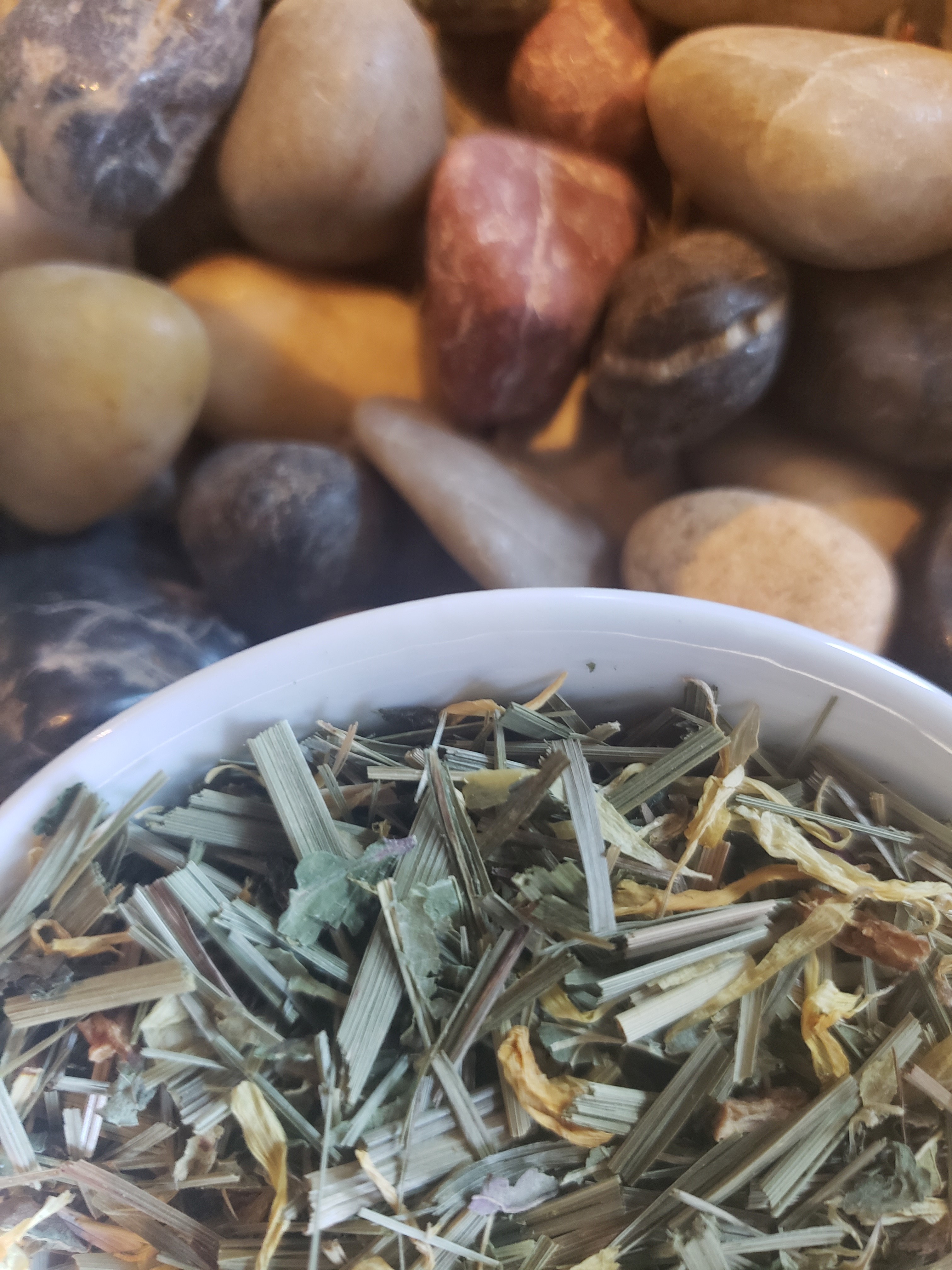 Ingredients: Certified Organic Blend; lemongrass, lemon verbena, lemon balm, lemon peel, lemon oil